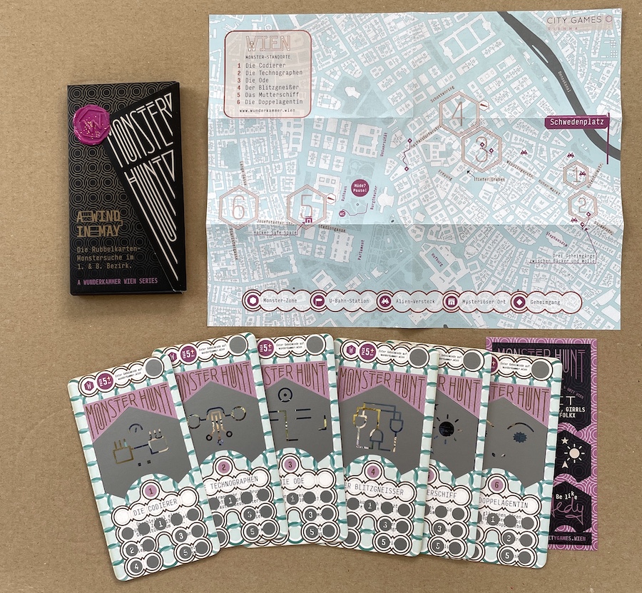 Monster Hunt ist ein ortsbezogenes Spiel, das in Wien gespielt wird. Ziel des Spiels ist es, reale Orte in der Stadt zu besuchen und dort versteckte Monster mit Hilfe von Rätseln, Hinweisen und einer Illustration zu finden. Wenn das Monster entdeckt ist, können die Spieler*innen online die Geschichte zu dem Ort lesen.