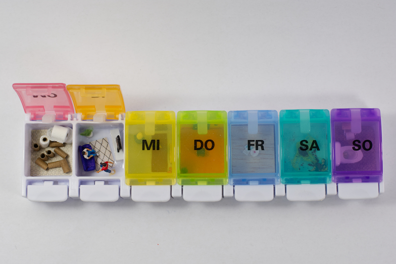 A medicine dispenser box diorama that invites you to take a glimpse into the life of a person with a chronic disease